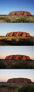 Uluru est un énorme monolithe (peut être le plus grand du monde, je ne sais pas, les guides touristiques se contredisent) posé au milieu du désert, ce rocher est sacré pour les aborigènes. Dans certaines cavités du rocher, on peu trouver de l'eau, des peintures rupestres…